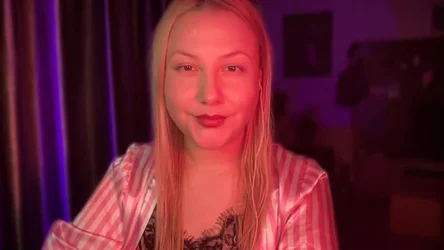 “The world outside just fades away when it's you and me here. I love this quiet, with the soft red and purple light painting my skin. My eyes are fixed on yours, and I wonder if you can feel the pull between us. I slowly run my hands through my hair, just thinking about you watching me. Every touch is deliberate, a little tease meant only for you. I want you to see the way my expression softens when I think of you. There's so much I want to share in our private chat. Let's stay here a while.”